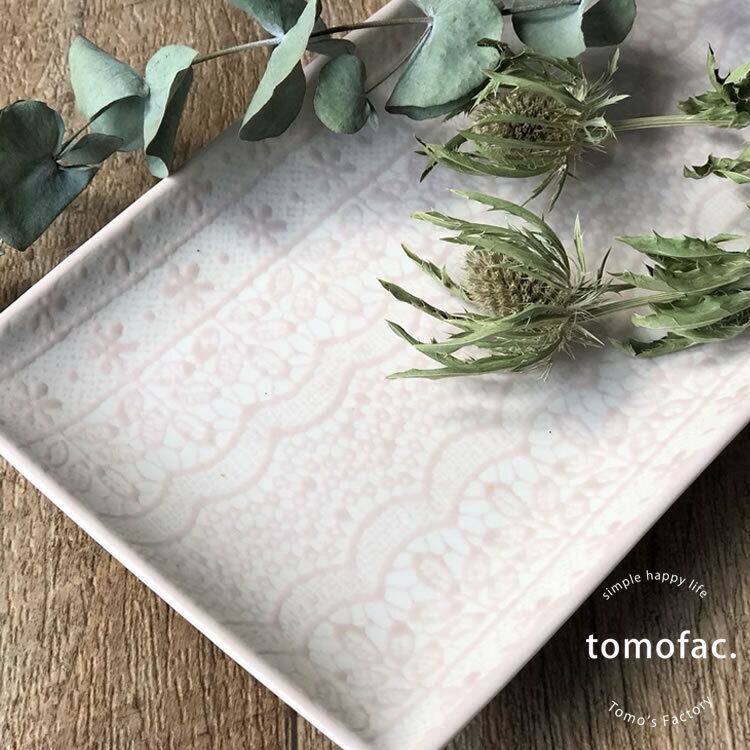 チュールレース 長角皿 波佐見焼 【tomofac】